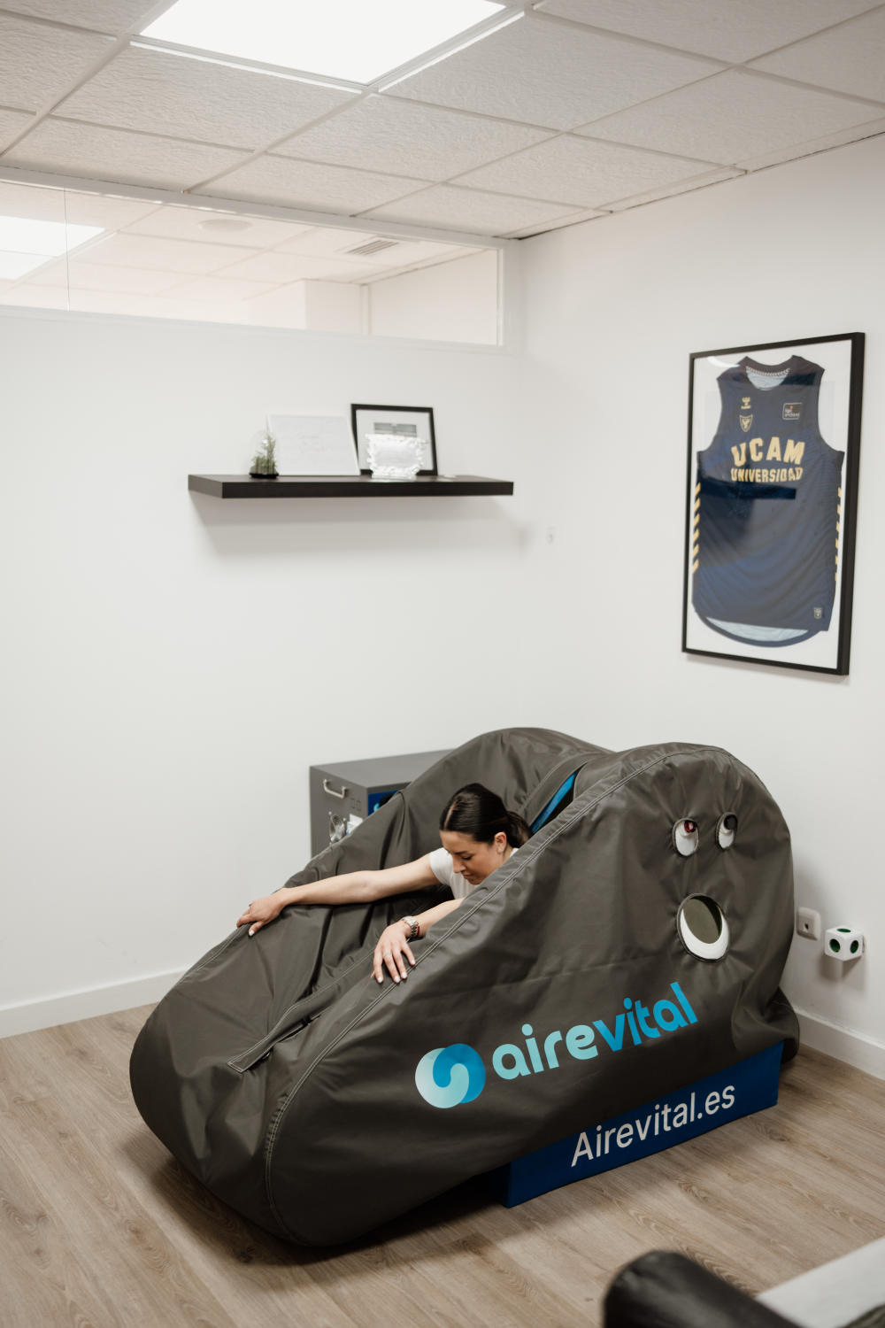 Tenemos la gran suerte de ser uno de los pocos centros en toda la región que disponemos de esta terapia en consulta. El paciente se introducira en un habitáculo que se queda cerrado herméticamente, que se genera una presión interna de 1,5 y mediante una mascarilla obtenemos oxigeno al 92/93% sabiendo que respiramos normalmente a un 21%. Obtendremos un incremento de oxigenación del tejido, disminuimos la inflamación, mejoramos la circulación, mejoramos la cicatrización de heridas, fracturas y gold estándar en las ulceras. Combatimos el estrés oxigenación y en cuanto al ámbito deportivo mejoramos la recuperación , reducimos la fatiga muscular y mejoramos el rendimiento deportivo. Prevenimos las lesiones, optimizamos la recuperación.